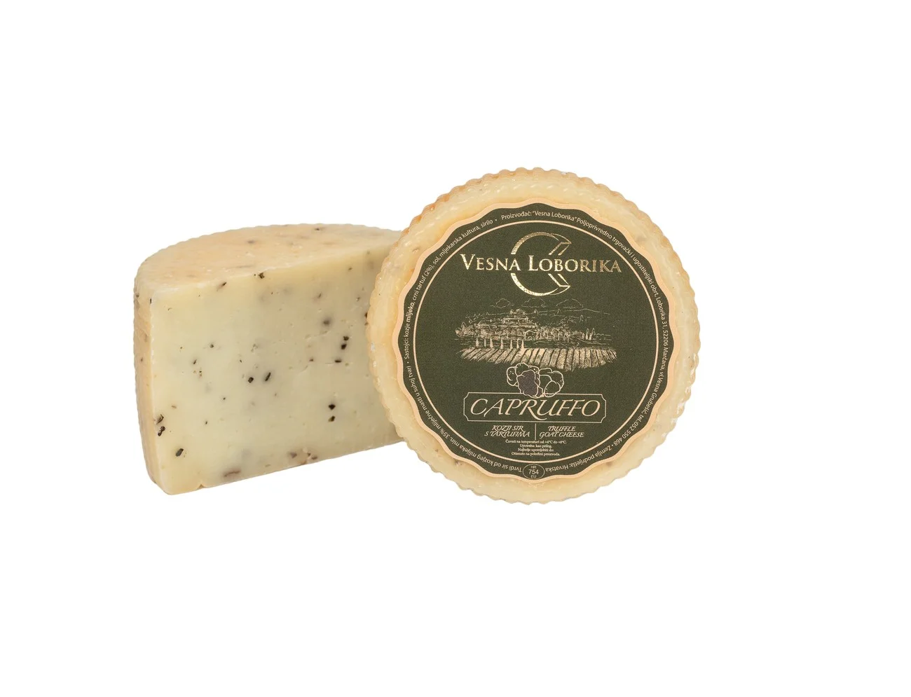 „Capruffo“ si distingue per l’aroma intenso del formaggio di capra e del tartufo nero. Arricchiate il vostro vassoio di formaggi con questo formaggio unico nel suo genere!